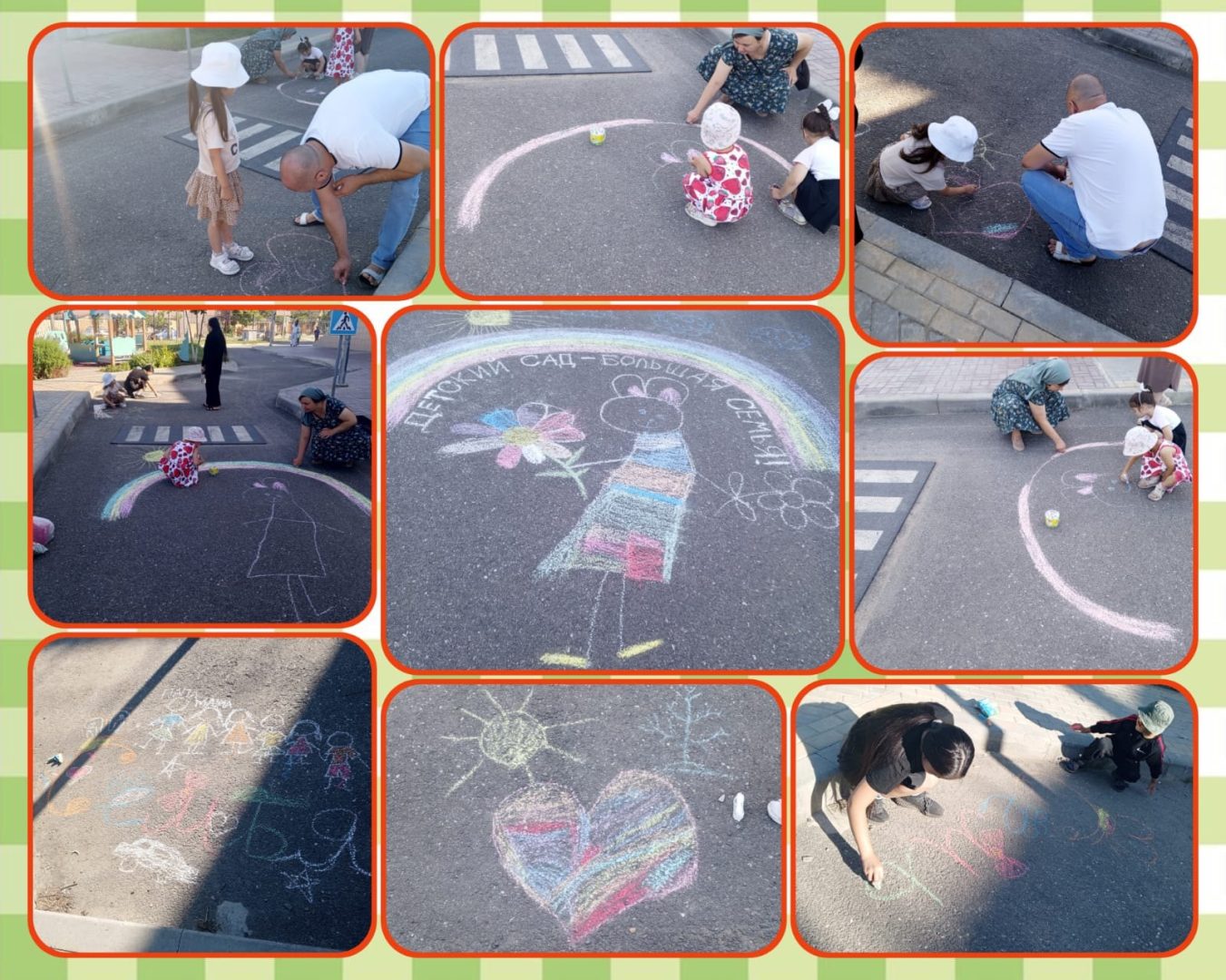 В прекрасный праздник «День семьи, любви и верности» в группе № 9 прошёл конкурс рисунков на асфальте «Моя семья», родители вместе с детьми нарисовали прекрасные рисунки, которые теперь будут украшать наш сад и напоминать о том, что семья это самое важное и главное, что у нас есть.