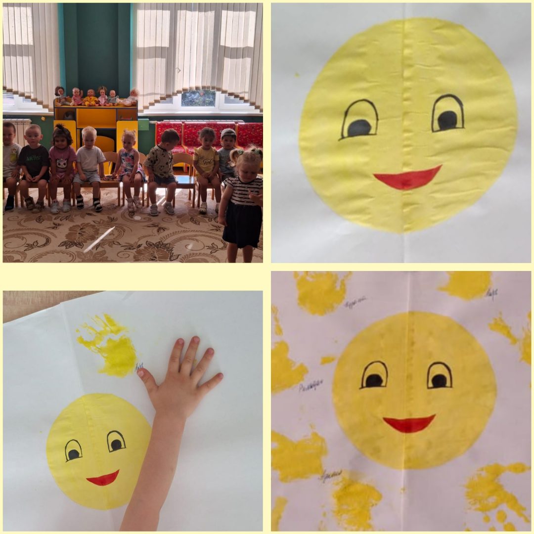 В тёплый, солнечный день Семьи, Любви и Верности, маленькие художники из ясельной группы создали удивительный символ дружбы – яркое, лучистое солнышко! Их крошечные пальчики, ещё не совсем уверенные, оставили на бумаге следы радости и тепла, воплотив в жизнь образ дружелюбного светила. Это солнышко – отражение детской чистоты, искренности и веры в светлое будущее, наполненное дружбой и любовь.
