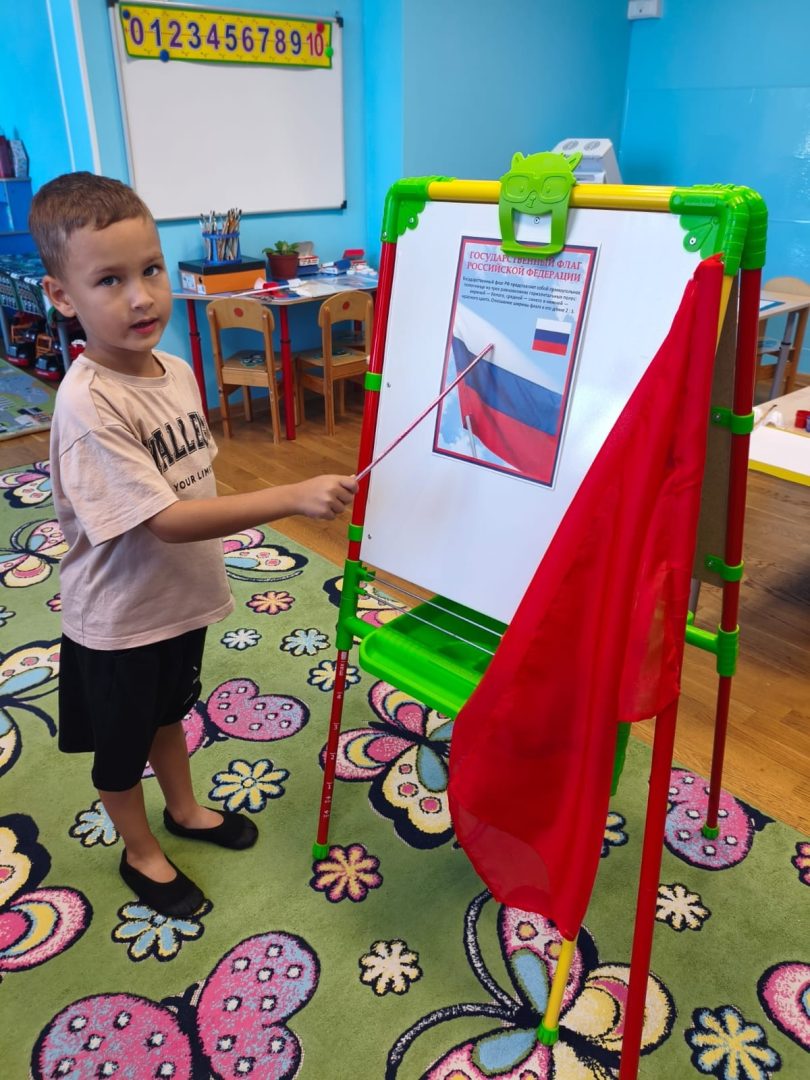 22 августа в группе № 5 прошла очень важная беседа на тему » Флаг моей страны». Воспитанники вместе слушали песню «Белый, синий, красный» слова и музыка С. С. Смирновой. Отвечали на вопрос воспитателя «Какой сегодня праздник?» Рассматривали иллюстрацию российского флага, рассказывали как располагаются цвета на российском флаге. Воспитатель объяснил детям, что флаг — это важный символ нашей страны, мы должны относиться к нему с почтением и уважением.